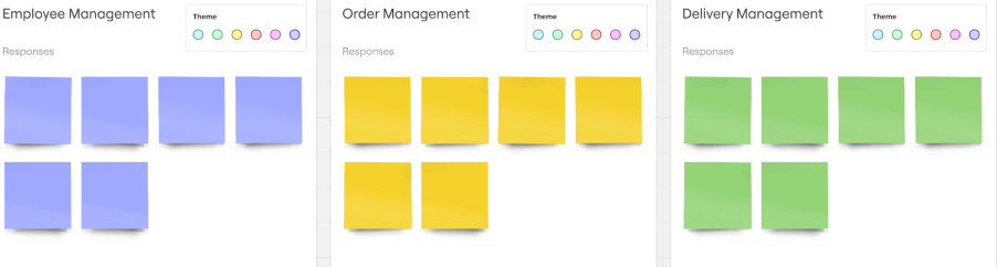 To help sort my findings from my research and actively share with the team, I used affinity mapping to organize my research results and responses using sticky notes and different platforms.