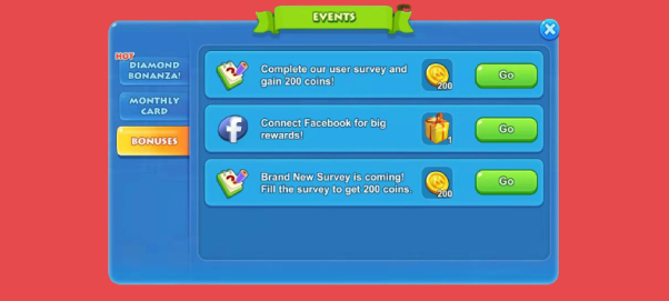 Together with the game designers, I created an intercept survey as part of the game. This was a quick way to gather feedback that included a short series of questions with simple scaled rating questions. The surveys had rewards of a high value number of coins.