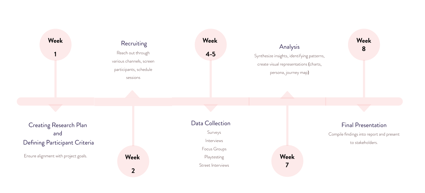- Weekly phone interviews and internal focus groups were specifically chosen to dive deeper into the qualitative aspects of our game design and development.