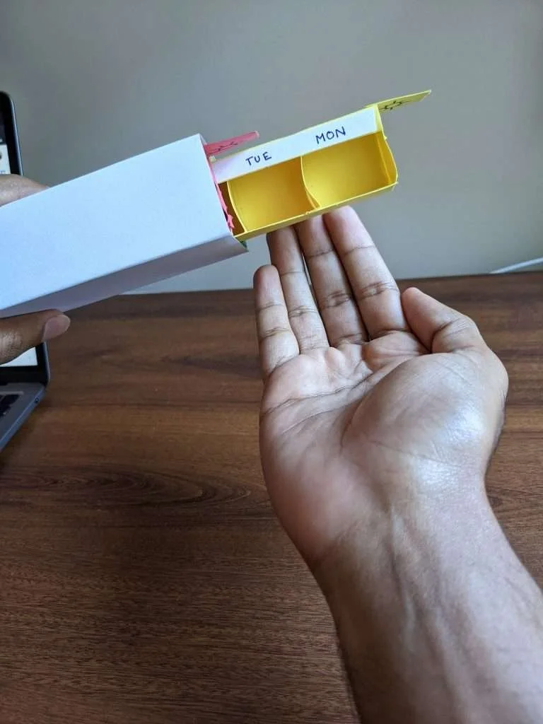 One of our team members told us a story about his grandfather in India who was having trouble remembering to take his daily medicine. Struggling with memory challenges, his grandfather found it difficult to organize and manage his own medication using a standard, plastic pill box. As we discussed this topic further, we discovered other team members and some of their loved ones were also taking daily medications, and they too, experienced specific challenges.